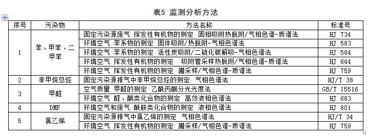 5.2.2大氣污染物濃度的測定采用表5所列的監(jiān)測方法或國家主管部門認(rèn)定的等效方法。