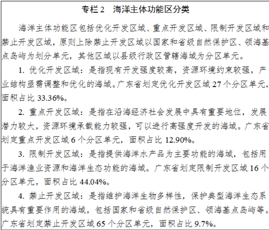 對(duì)海洋優(yōu)化開(kāi)發(fā)區(qū)域,調(diào)整相鄰陸域優(yōu)化產(chǎn)業(yè)和人口布局。海洋優(yōu)化開(kāi)發(fā)區(qū)主要分布在珠三角、湛江市區(qū)和汕頭市區(qū)等。規(guī)劃對(duì)汕頭市區(qū)、珠三角和湛江市區(qū)海洋優(yōu)化開(kāi)發(fā)區(qū)域相鄰區(qū)域的產(chǎn)業(yè)和人口布局進(jìn)行優(yōu)化與調(diào)整,涉及面積1946平方千米。