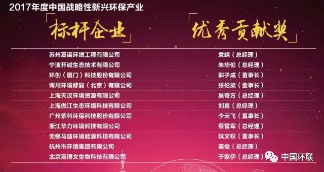 2017年度中國戰(zhàn)略性新興環(huán)保產(chǎn)業(yè)標(biāo)桿企業(yè)與優(yōu)秀貢獻獎