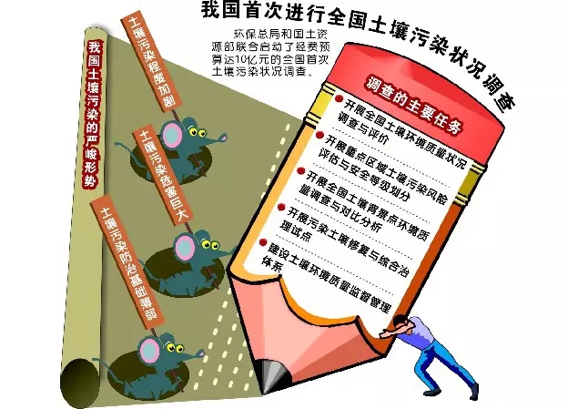 今年4月17日發(fā)布的《全國土壤污染狀況調(diào)查公報》顯示:全國土壤環(huán)境狀況總體不容樂觀,部分地區(qū)土壤污染較重,耕地土壤環(huán)境質(zhì)量堪憂,工礦業(yè)廢棄地土壤環(huán)境問題突出,全國土壤污染超標(biāo)率達(dá)16.1%。污染類型以無機(jī)污染物為主,南方土壤污染重于北方,長三角、珠三角、東北老工業(yè)基地等部分區(qū)域土壤污染問題較為突出,西南、中南地區(qū)土壤重金屬超標(biāo)范圍較大。總體上呈現(xiàn)出新老污染并存、無機(jī)有機(jī)復(fù)合、超標(biāo)范圍廣闊的嚴(yán)峻局面,因此從國家層面重視土壤污染問題、啟動土壤污染修復(fù)已經(jīng)刻不容緩。