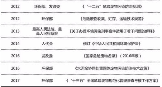 近年來(lái)危廢相關(guān)法規(guī)政策