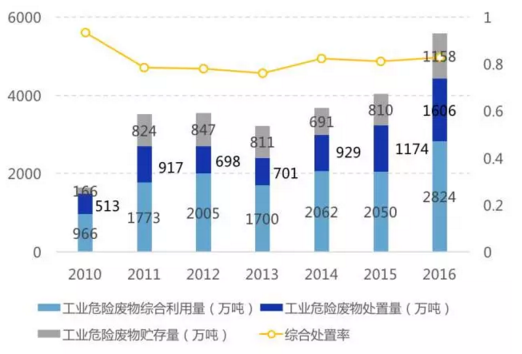 16年工業(yè)危廢綜合處置率83%