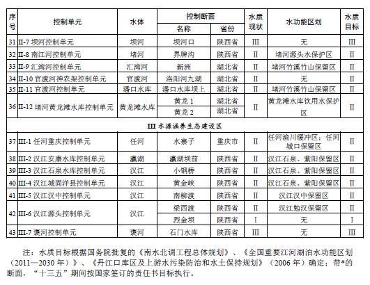 丹江口水庫和中線取水口水質(zhì)穩(wěn)定并保持Ⅱ類,庫區(qū)總氮濃度不劣于現(xiàn)狀水平;到2020年,漢江和丹江干流斷面水質(zhì)為Ⅱ類,其它直接匯入丹江口水庫的主要河流水質(zhì)達(dá)到水功能區(qū)水質(zhì)目標(biāo)。