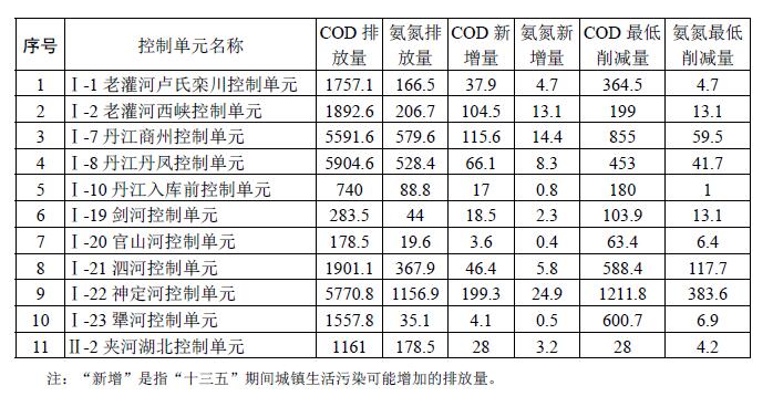 水質(zhì)不達(dá)標(biāo)或不穩(wěn)定達(dá)標(biāo)的11個優(yōu)先控制單元,“十三五”期間,污染物排放量削減不得低于下表要求,實現(xiàn)治理達(dá)標(biāo)。達(dá)標(biāo)治理優(yōu)先控制單元污染物削減任務(wù)表(單位:噸/年)