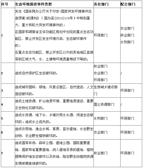 2、市州生態(tài)環(huán)境保護(hù)行政主管部門負(fù)責(zé)受理本行政區(qū)域內(nèi)除省級(jí)生態(tài)環(huán)境保護(hù)行政主管部門受理以外的下列生態(tài)環(huán)境損害事件: