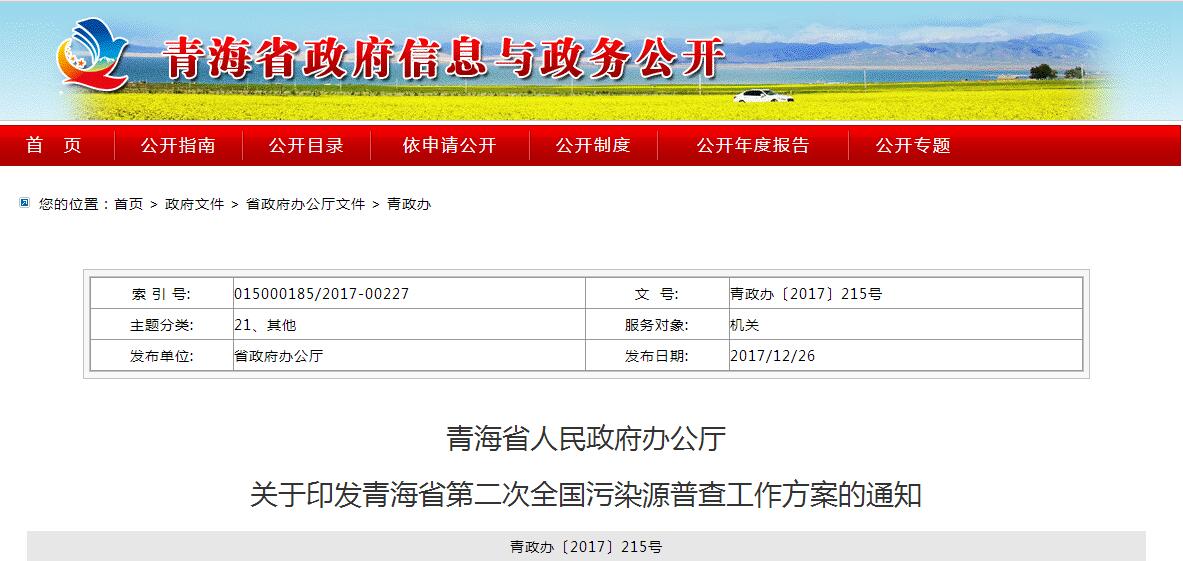 關(guān)于印發(fā)青海省第二次全國污染源普查工作方案的通知