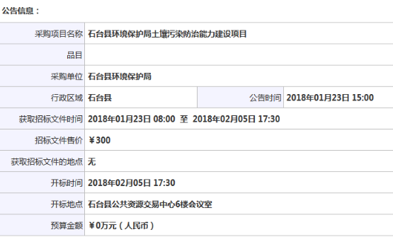 安徽省池州市石臺縣發(fā)布環(huán)境保護(hù)局土壤污染防治能力建設(shè)項(xiàng)目STZF2017191A招標(biāo)公告,以下是全文: