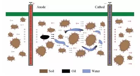 3.電動修復法:是一種原位土壤修復技術。通過向污染土壤中置人電極,并通以低壓直流電形成電場。在電勢梯度作用下產(chǎn)生的電動效應(電滲析、電遷移和電泳)會驅(qū)動土壤中的流體介質(zhì)發(fā)生定向移動,從而使污染物伴隨主體流動從土壤中移除