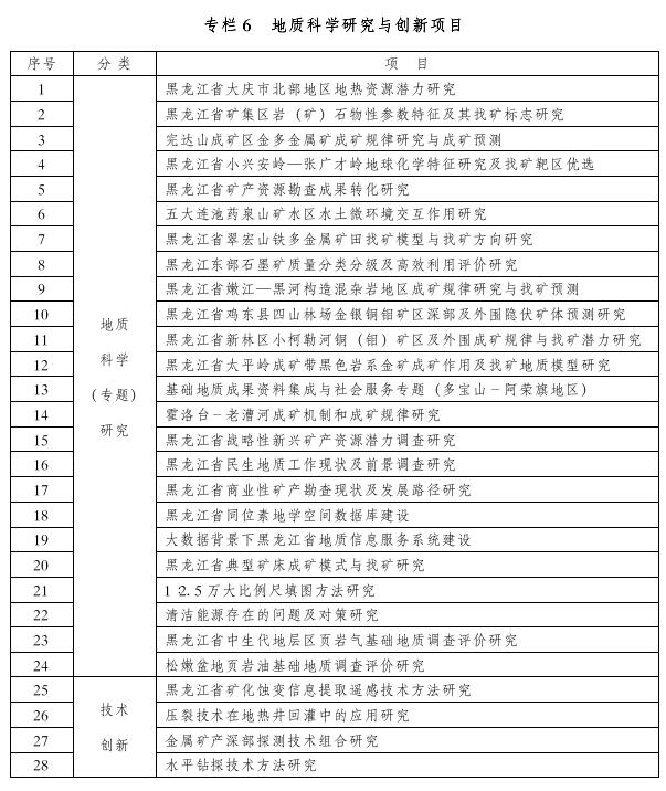 (三)重點工作布局。推進我省地質(zhì)勘查三年專項行動和找礦突破戰(zhàn)略行動(“358”工程),加強基礎(chǔ)性地質(zhì)調(diào)查和礦產(chǎn)資源勘查,劃定大興安嶺洛古河金多金屬礦、大興安嶺二十八站-二十五站金多金屬礦等重點調(diào)查評價區(qū)44個。持續(xù)穩(wěn)定推進地質(zhì)勘查工作,進一步調(diào)整勘查重點和優(yōu)化工作布局,引導(dǎo)社會資金投入,加大找礦力度,落實多寶山-大新屯等國家級重點勘查區(qū)9個,劃定大興安嶺地區(qū)二十一站河-主功河河谷地區(qū)金礦、黑河市大西江農(nóng)場高嶺土礦等省級重點勘查區(qū)81個和扎龍丹頂鶴等珍禽及濕地生態(tài)等禁止勘查區(qū)124個。落實蘿北石墨等國家規(guī)劃礦區(qū)6個,劃定鐵力鹿鳴鉬多金屬礦等省級重點礦區(qū)22個。劃定鶴崗、雞西等煤炭限制開采區(qū)4個和扎龍丹頂鶴等珍禽及濕地生態(tài)等禁止開采區(qū)124個。以歷史遺留礦山及國有大、中型生產(chǎn)礦山為重點,落實國家級礦山地質(zhì)環(huán)境重點區(qū)24個,包括哈爾濱市阿城區(qū)1個、黑河市嫩江縣1個、雞西市滴道區(qū)等6個、雙鴨山市嶺東區(qū)等4個、伊春市翠巒區(qū)等4個、鶴崗市興安區(qū)等2個、七臺河市新興區(qū)1個、牡丹江市林口縣1個、大興安嶺地區(qū)漠河縣等4個,劃定省級黑河市煤礦、非金屬等礦山地質(zhì)環(huán)境重點治理區(qū)2個,集中在鶴崗、雙鴨山、七臺河、雞西等地。加快解決歷史遺留問題,優(yōu)化礦山地質(zhì)環(huán)境,整體推動礦業(yè)布局優(yōu)化。根據(jù)資源相對富集、礦山分布相對集中、礦業(yè)秩序良好、管理創(chuàng)新能力較強的原則,促進我省綠色礦業(yè)健康發(fā)展。