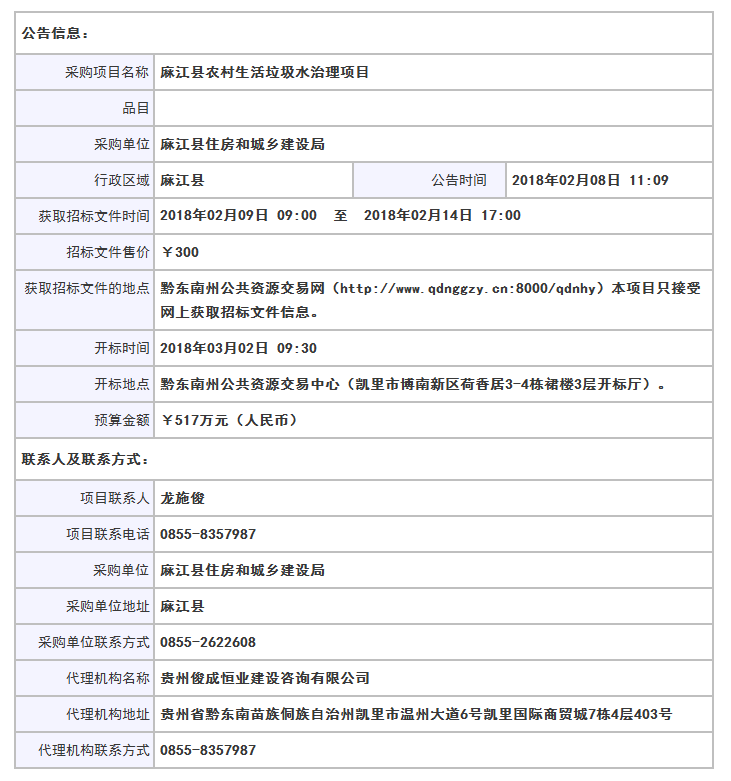 麻江縣農(nóng)村生活垃圾水治理項(xiàng)目采購(gòu)公告
