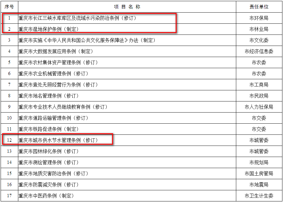 重慶市2018年立法工作計劃公布,涉及水污染防治、生活垃圾分類、海綿城市建設等眾多環(huán)保類立法項,詳情如下:
