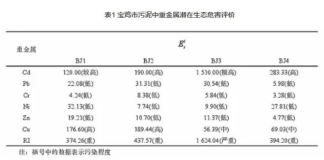 二、寶雞市污泥重金屬含量及風險評價