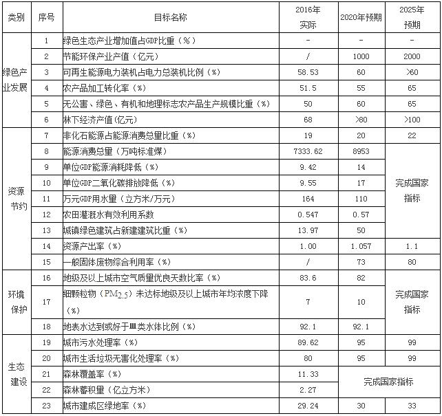 到2020年,產業(yè)結構調整取得較大進展,生態(tài)文明體制改革取得重大突破,生態(tài)產業(yè)體系初步形成;到2025年,生態(tài)產業(yè)體系進一步完善,生態(tài)環(huán)境質量明顯改善,清潔生產、高效生產、低碳生產占主導地位,為建設綠色低碳循環(huán)發(fā)展的經濟體系奠定堅實基礎。經過5-8年的發(fā)展,清潔生產產業(yè)初具規(guī)模,傳統產業(yè)綠色發(fā)展水平和質量效益顯著提高;節(jié)能環(huán)保、清潔能源、中醫(yī)中藥、文化旅游、通道物流、數據信息、軍民融合、先進制造等新興產業(yè)發(fā)展壯大,成為全省經濟的重要增長極;循環(huán)農業(yè)優(yōu)勢彰顯、打響綠色生態(tài)品牌,建成綠色生態(tài)農產品生產加工基地,構建市場潛能大、布局合理、功能完備的生態(tài)產業(yè)體系,綠色發(fā)展能力顯著增強,形成綠色生態(tài)產業(yè)發(fā)達、生態(tài)環(huán)境質量優(yōu)良、社會經濟和資源環(huán)境統籌協調的發(fā)展格局。