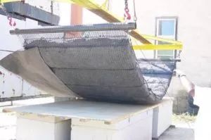 對于活性炭這類沉降性能較差的材料而言,是需要進(jìn)行預(yù)濕處理以去除材料內(nèi)空氣來幫助減少其水中浮力的。在施工過程中,如果采用此類沉降性能較差的材料,或是遇到水體流速較快不利于施工的情況,可以考慮使用水下擴(kuò)散器,蛤形或其他抓斗將覆蓋材料帶入水下釋放,幫助其更好的完成覆蓋。另外,使用土工織物包裹AquaGate一類的復(fù)合材料或其他活性復(fù)合材料進(jìn)行覆蓋,亦可以增加施工的可操作性。一般情況下,這種土工織物是通過機(jī)械設(shè)備或潛水員進(jìn)行水下覆蓋的。這類包裹著活性覆蓋材料的土工織物,例如ReactiveCoreMat材料,在通常情況下覆蓋材料容量較小,厚度也較薄。但如工程需要,也可以通過使用更厚的石龍材料以增大土工織物的覆蓋材料容量,例如:MarineMattress材料便是使用了這一技術(shù)。另外,鉸接式砌塊或其他防護(hù)墊,均可用來放置或包裹覆蓋材料。