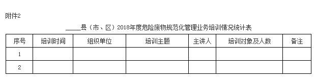 4月30日前,各縣、市、區(qū)環(huán)保局要對(duì)轄區(qū)內(nèi)危險(xiǎn)廢物產(chǎn)生和經(jīng)營(yíng)單位開(kāi)展危險(xiǎn)廢物相關(guān)知識(shí)培訓(xùn),認(rèn)真學(xué)習(xí)相關(guān)法律法規(guī),新修訂的危險(xiǎn)廢物規(guī)范化管理指標(biāo)體系、危險(xiǎn)廢物產(chǎn)生單位管理計(jì)劃制定指南、新版危險(xiǎn)廢物名錄、固體廢物管理信息系統(tǒng)等,做好培訓(xùn)記錄,培訓(xùn)情況(附件2)于5月底前報(bào)市局。