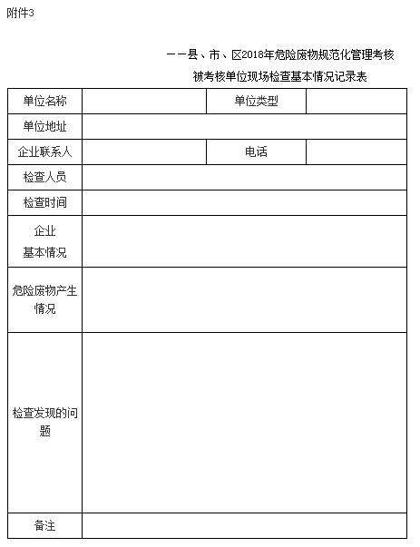 (一)縣、市、區(qū)自查考核。各縣、市、區(qū)環(huán)保局由固體廢物管理、環(huán)境監(jiān)察、環(huán)境監(jiān)測(cè)等相關(guān)業(yè)務(wù)部門(mén)組成考核組,對(duì)產(chǎn)廢單位和經(jīng)營(yíng)單位進(jìn)行自查考核。自查考核應(yīng)嚴(yán)格執(zhí)行環(huán)境保護(hù)部《危險(xiǎn)廢物規(guī)范化管理指標(biāo)體系》(環(huán)辦〔2015〕99號(hào))規(guī)定的考核內(nèi)容和評(píng)分標(biāo)準(zhǔn),不得隨意放寬標(biāo)準(zhǔn)??己藭r(shí)填寫(xiě)《被考核單位現(xiàn)場(chǎng)檢查基本情況記錄表》(見(jiàn)附件3)??h級(jí)環(huán)保部門(mén)自查考核和復(fù)查工作于5月31日前完成,考核結(jié)果及工作報(bào)告(工作報(bào)告按附件4格式,附考核結(jié)果匯總表)于6月10日前報(bào)市局
