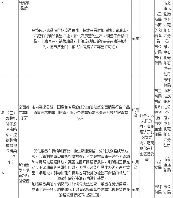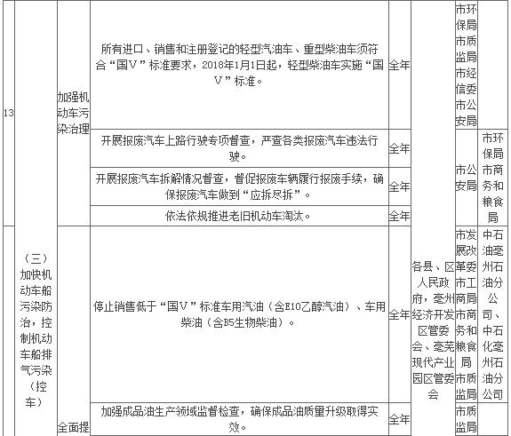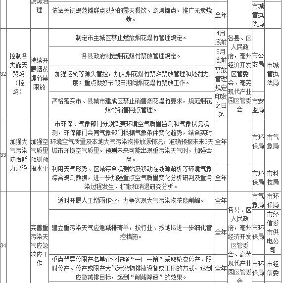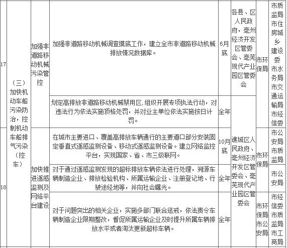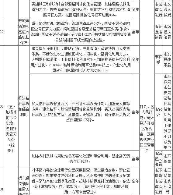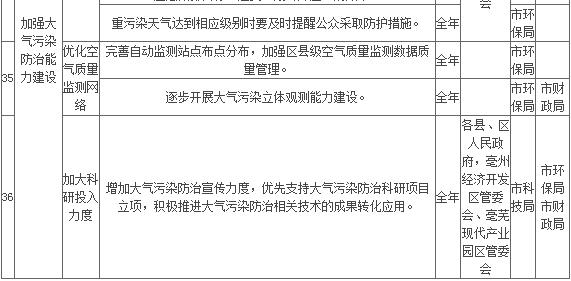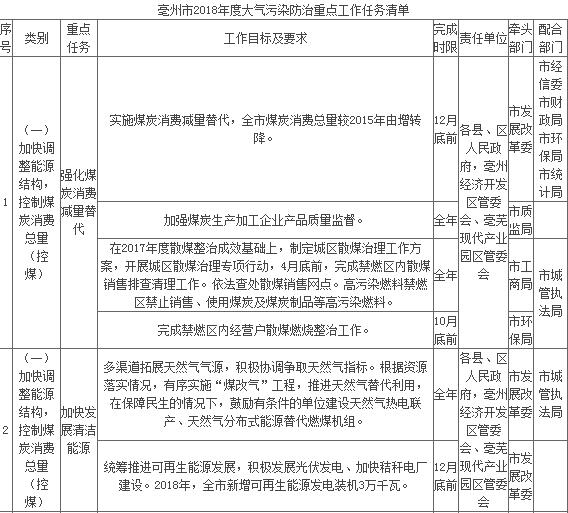 附件:亳州市2018年大氣污染防治重點工作任務清單