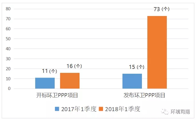 1季度,各地政府采購網共發(fā)布各類環(huán)衛(wèi)PPP項目(環(huán)衛(wèi)服務、環(huán)衛(wèi)一體化、垃圾收運、垃圾治理)多達73個,其中開標項目有16個,而去年同期開標的環(huán)衛(wèi)PPP項目只有11個。