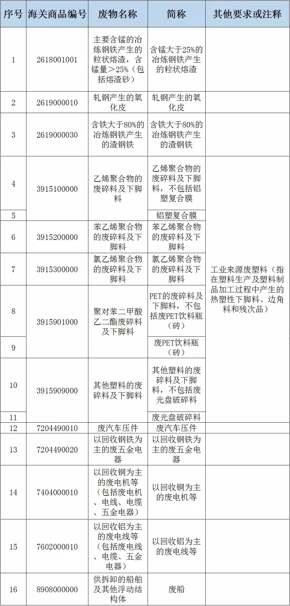 關(guān)于調(diào)整《進(jìn)口廢物管理目錄》的公告
