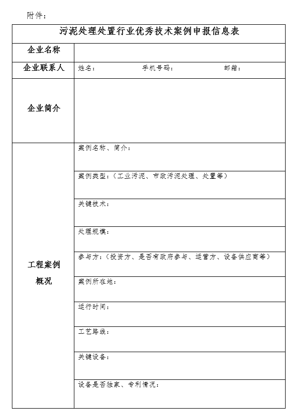 附件:污泥處理處置行業(yè)優(yōu)秀技術(shù)案例申報(bào)信息表