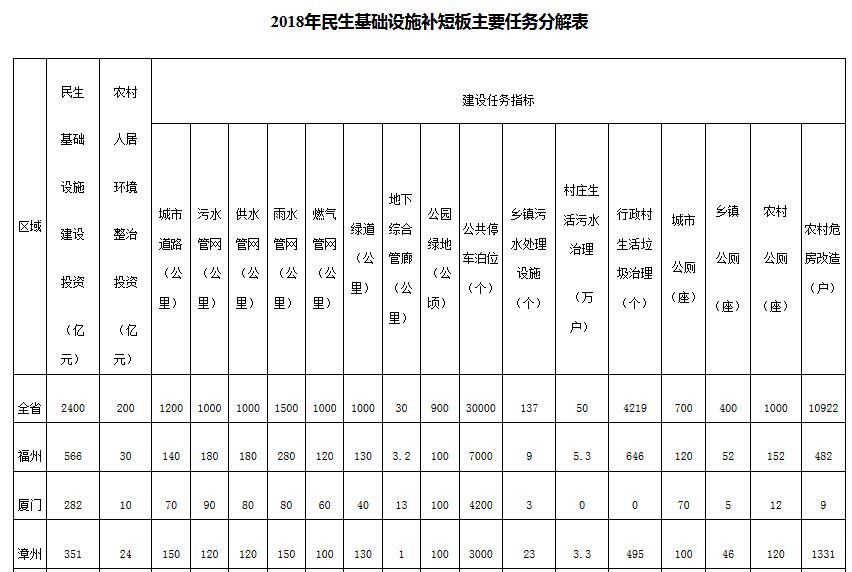 日前,福建印發(fā)《2018年民生基礎(chǔ)設(shè)施補短板實施方案》。