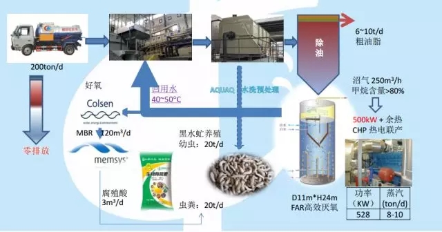 合肥市餐廚垃圾資源化利用和無害化處理工程(一期)項(xiàng)目則采用的是“水洗分選預(yù)處理+高效厭氧+生物好氧堆肥”路徑。項(xiàng)目日處理量為200噸/日,有機(jī)肥產(chǎn)量近60噸/日。利用黑水虻輔助堆肥處理,極大地降低了堆肥處理時間,加強(qiáng)了堆肥處理效率,而經(jīng)過水洗+高效厭氧處理的純凈物料又使得黑水虻的養(yǎng)殖效果更佳,而黑水虻本身亦可用于蛋白質(zhì)生產(chǎn)。采用黑水虻養(yǎng)殖工藝極大地增長了餐廚垃圾資源化收益。