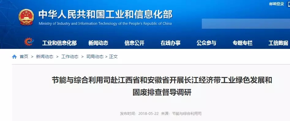 長江經(jīng)濟帶工業(yè)綠色發(fā)展和固廢排查督導調(diào)研