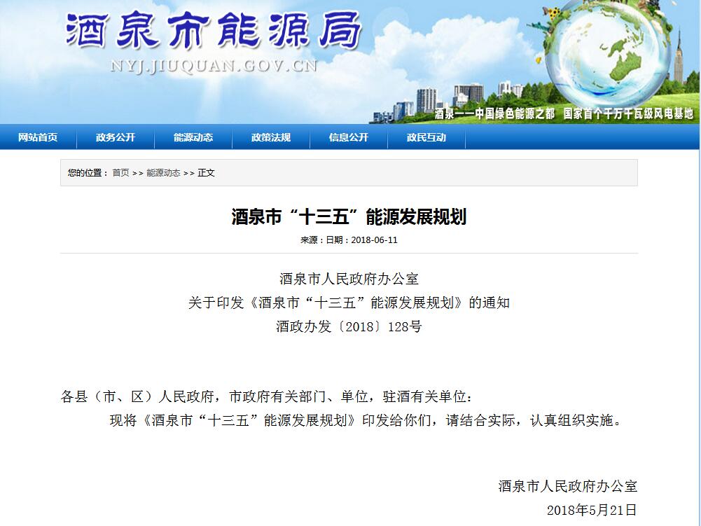 酒泉市能源局日前印發(fā)《酒泉市“十三五”能源發(fā)展規(guī)劃》,《規(guī)劃》包括近零碳排放區(qū)建設(shè)等內(nèi)容,包含一個(gè)垃圾發(fā)電項(xiàng)目和三個(gè)生物質(zhì)發(fā)電項(xiàng)目。