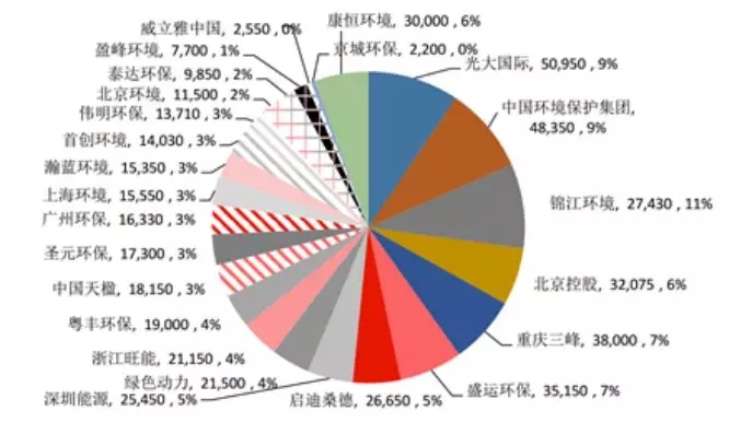 中國(guó)垃圾焚燒市場(chǎng)占率(按2016年底在手項(xiàng)目規(guī)模統(tǒng)計(jì))
