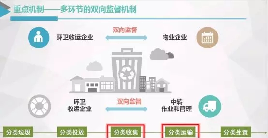 在分類收集和分類運輸環(huán)節(jié)上,實施多環(huán)節(jié)的雙向監(jiān)督機制。對小區(qū)物業(yè)要求分類駁運,對源頭分類進行監(jiān)督,對環(huán)衛(wèi)分類清運雙向監(jiān)督。環(huán)衛(wèi)清運企業(yè)按照清運要求,對前面分類投放及后端的中轉(zhuǎn)作業(yè)、管理進行分類駁運的監(jiān)督,是雙向的監(jiān)督機制。