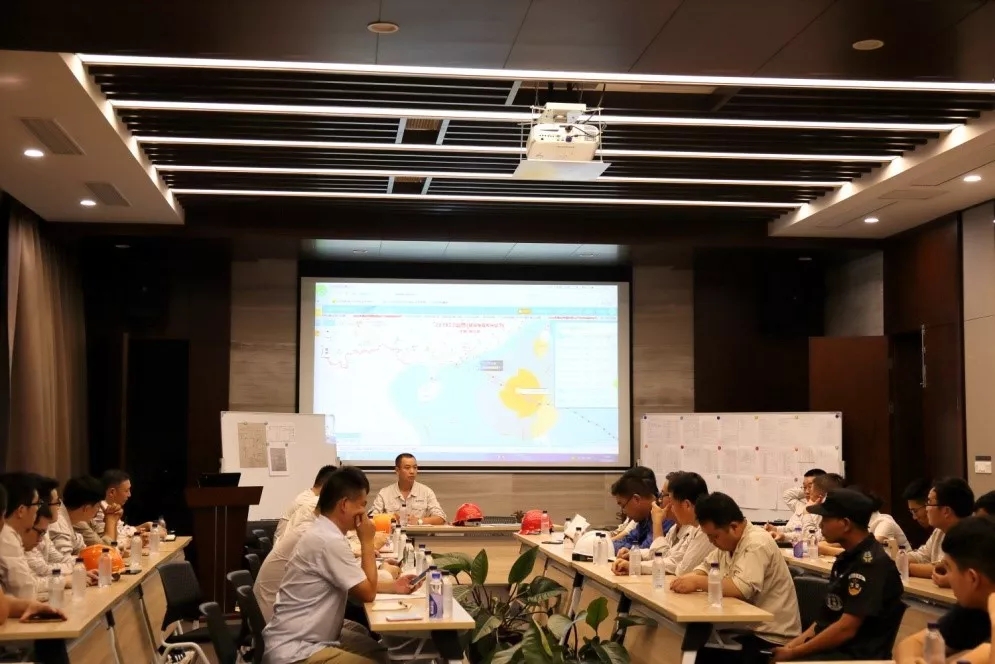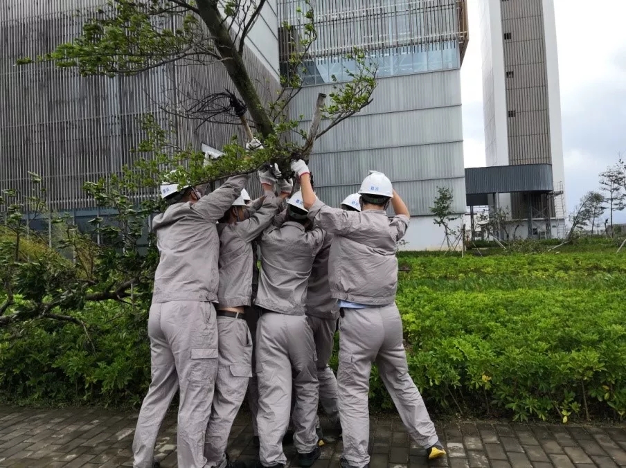 9月16日臺風來襲,因擔負著處理生活垃圾的任務且垃圾發(fā)電廠啟停工序復雜,不能說停就停,應急指揮部嚴密監(jiān)視臺風發(fā)展動向,根據風力發(fā)展實際情況,貫徹“生命至上”原則,合理安排停產防御,在進入12級風圈前踩點完成了停運操作,所有人員均撤離回到中控室。