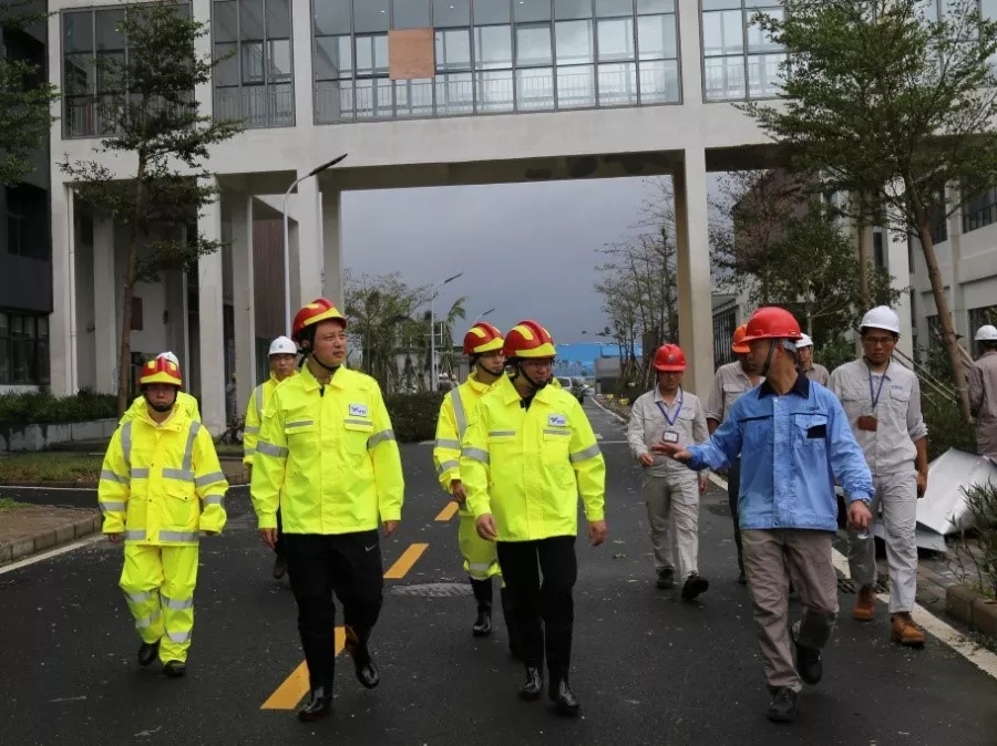 9月15日廠區(qū)防臺措施、物資準備全面落實,公司員工安頓好家人后迅速回到工作崗位,團結一致,抵抗“山竹”。防臺應急指揮部到現(xiàn)場逐一復查防臺措施及物資準備到位情況,確保臺風期間人身和設備安全。