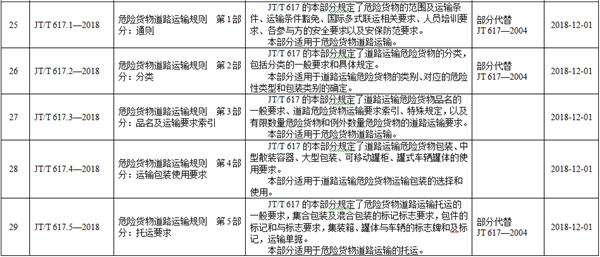 該標(biāo)準(zhǔn)將于2018年12月1日起實施。標(biāo)準(zhǔn)包括7個部分、600多頁、40多萬字,內(nèi)容完整、系統(tǒng)性強,對危險貨物分類、包裝、托運、裝卸、運輸?shù)拳h(huán)節(jié)的操作要求都進行了明確規(guī)定。