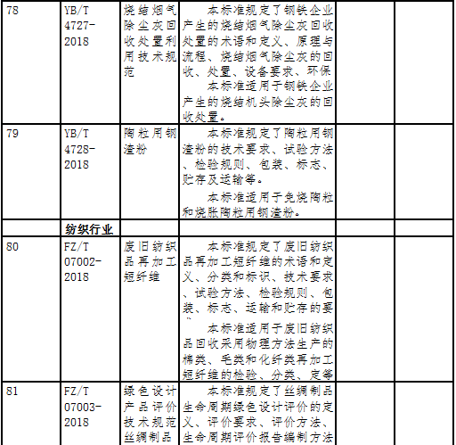 附件:81項行業(yè)標(biāo)準(zhǔn)名稱及主要內(nèi)容.doc(摘選建材行業(yè)、有色行業(yè)、冶金行業(yè)、紡織行業(yè),其他略)