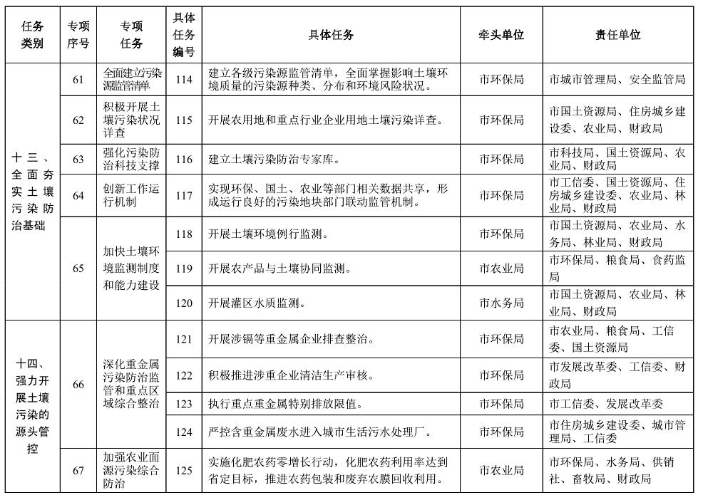 責(zé)任單位:市環(huán)保局、國土資源局、科技局、財政局,各縣(市、區(qū))人民政府(管委會)