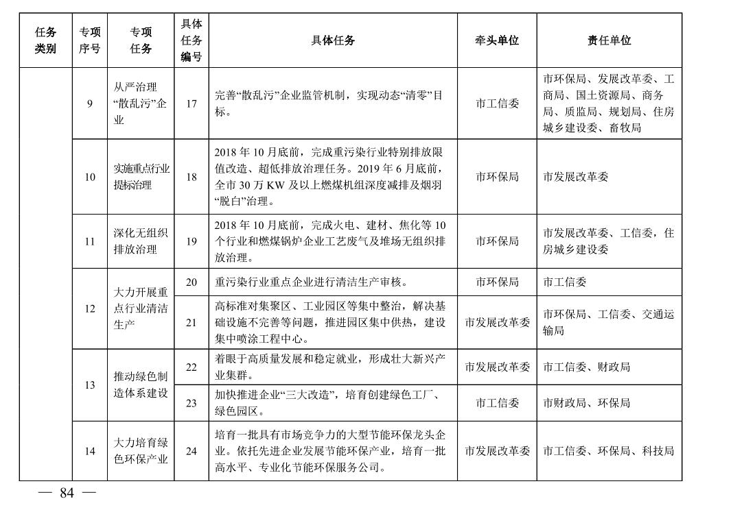 責(zé)任單位:市工信委、環(huán)保局、煤炭局,各縣(市、區(qū))人民政府(管委會)