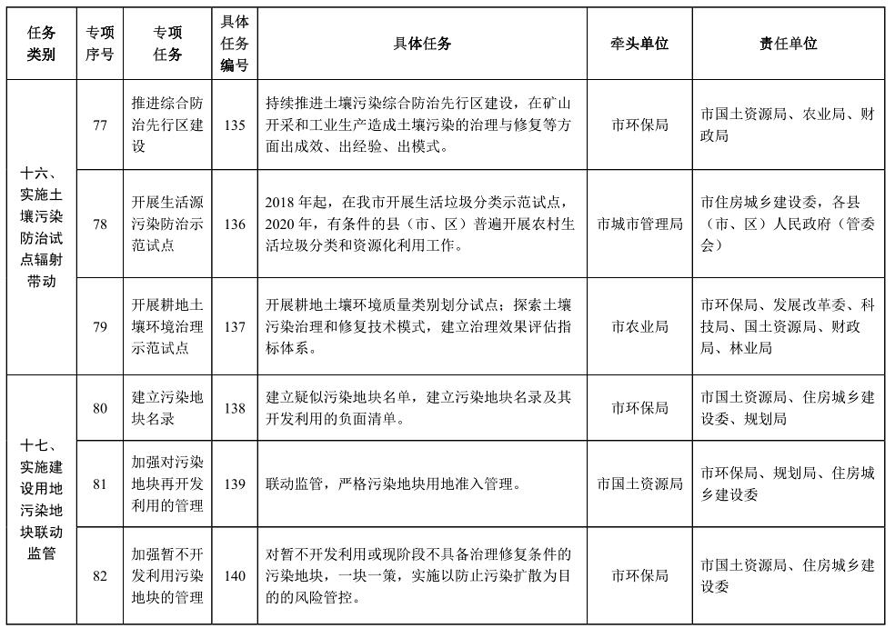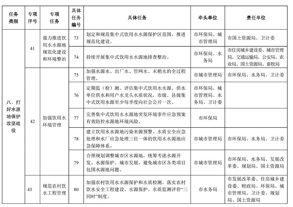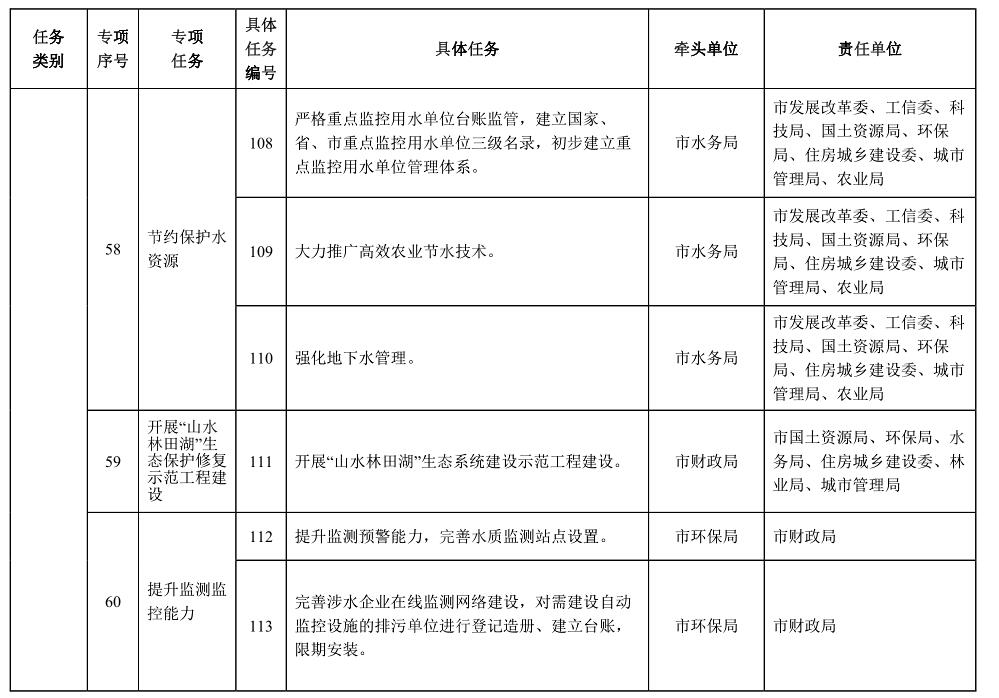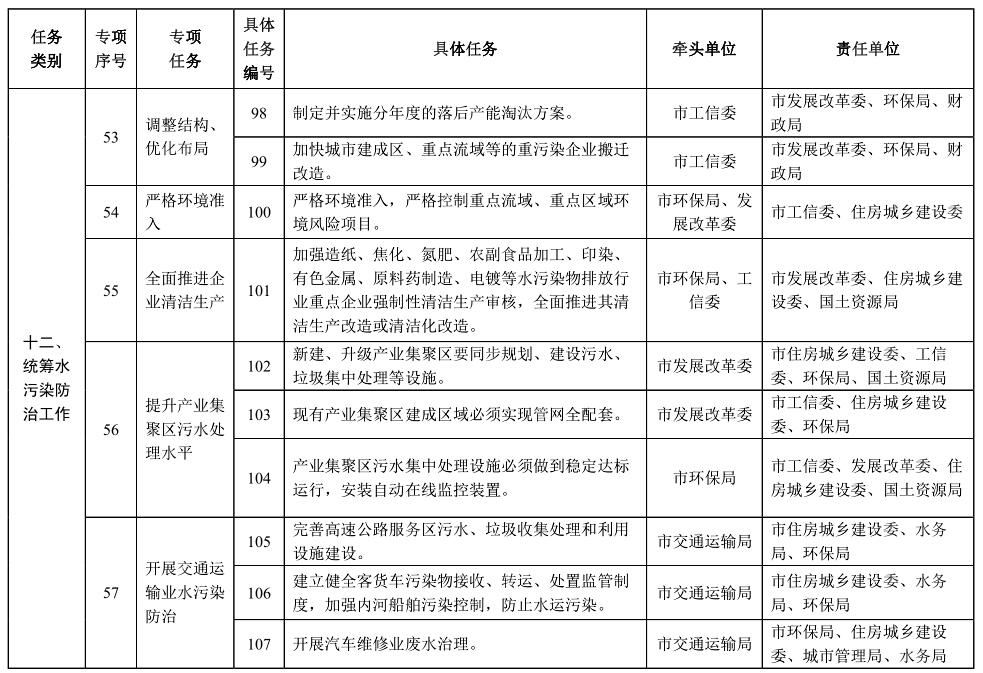 責(zé)任單位:市發(fā)展改革委、環(huán)保局、水務(wù)局、國土資源