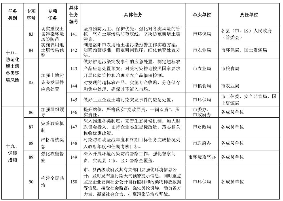 責(zé)任單位:市環(huán)保局、國土資源局,洛陽供電公司,各縣(市、區(qū))人民政府(管委會)