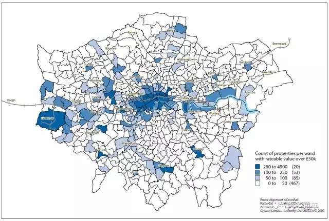 PPP模式可能使項目更加物有所值,公共預(yù)算支出更有效率,但單純依靠政府付費,財政可承受能力終歸是有上限的。因此,如何挖掘項目本身的商業(yè)潛力和拓展公共支出的來源就顯得尤為重要。大型基礎(chǔ)設(shè)施項目往往具有外部性,可以采用適當?shù)姆椒▽⑵渫獠啃б鎯?nèi)在化,來反哺項目本身。橫穿倫敦108公里的伊麗莎白線的總建設(shè)預(yù)算達148億英鎊,計劃通過稅收增量融資和開發(fā)基礎(chǔ)設(shè)施費的模式來將地鐵帶動的土地和物業(yè)價值升值反饋給軌道項目。一方面,在未來24-30年內(nèi),對該軌道項目收益的價值5.5萬英鎊以上的商業(yè)物業(yè)額外征收2%的商業(yè)物業(yè)稅(BRS-Business Rate Supplement),如下圖所示。