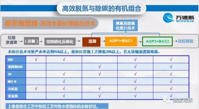南京萬德斯環(huán)保科技股份有限公司上海分公司總經(jīng)理陳建湧介紹,在滲瀝液脫碳技術(shù)上,萬德斯環(huán)保采用“厭氧+高效生化+納濾+臭氧高級(jí)氧化AOP(Advanced Oxidation Process)” 為主的工藝,在高效脫氮中,利用短程硝化技術(shù),節(jié)省供氧量25%、節(jié)省反硝化碳源40%、減少污泥生成量50%、減少投堿量、縮短反應(yīng)時(shí)間。在滲瀝液高效全量處理中,組合利用 “厭氧+短程硝化反硝化+臭氧高級(jí)氧化(混凝+AOP1+BAC1+AOP2+BAC2)”技術(shù),能使產(chǎn)水率達(dá)到95%以上,且無濃縮液遺留難題。除技術(shù)創(chuàng)新外,陳建湧總經(jīng)理認(rèn)為,提倡垃圾干濕分類,采取各種有效措施減少各種好水分包括雨水進(jìn)入垃圾,以及垃圾堆場(chǎng)等,對(duì)降低滲瀝液處理成本具有非常重要的意義。