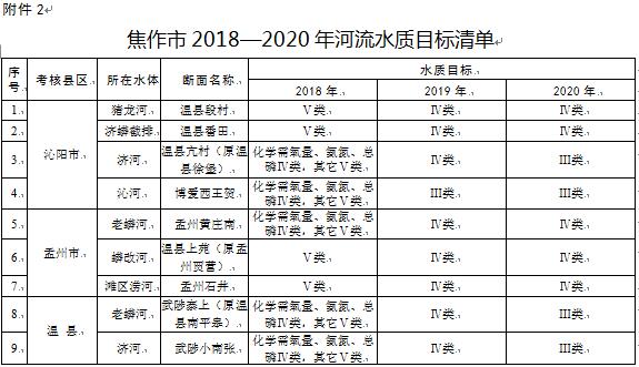 2.焦作市2018—2020年河流水質(zhì)目標清單