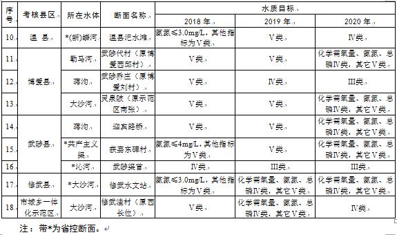 8.推進水污染綜合整治及水生態(tài)保護修復。加強河湖水污染綜合整治及水生態(tài)保護、修復等。針對沁河(武陟渠首斷面),相關(guān)縣(市)要制定實施河流水質(zhì)提升專項方案,確保到2019年斷面水質(zhì)達到或好于Ⅲ類;針對蟒河、共產(chǎn)主義渠、大沙河等污染較重河流(水體),相關(guān)縣(市)要制定實施整治方案,確保到2019年蟒河溫縣汜水灘、共產(chǎn)主義渠獲嘉東碑村、大沙河修武水文站斷面水質(zhì)達到或好于Ⅴ類,到2020年蟒河溫縣汜水灘斷面水質(zhì)達到或好于Ⅳ類。(市住房城鄉(xiāng)建設局、水利局、環(huán)境保護局牽頭,市發(fā)展改革委、財政局、林業(yè)局參與,各縣(市)區(qū)政府、市城鄉(xiāng)一體化示范區(qū)管委會負責落實)