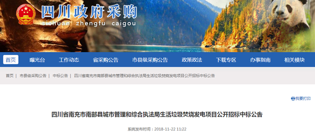 原標(biāo)題:垃圾處理補(bǔ)貼費(fèi)68元/噸,中國環(huán)保中標(biāo)四川南充市南部縣垃圾焚燒發(fā)電項(xiàng)目