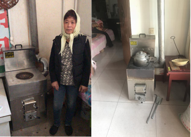 2017年每戶安裝生物質壁爐取暖,供熱功率為16KW,年約消耗顆粒2 噸/戶。壁爐本身可通過微信連接,自動控制,據不同時段實地供暖,測溫室內溫度達到18℃以上,且能夠解決居民日常做飯和熱水供應問題,每個取暖期可減少排放二氧化碳8噸、二氧化硫5.5噸、粉塵0.76噸。