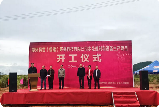 2018年11月21日,愛(ài)環(huán)吳世(蘇州)環(huán)保股份有限公司全資控股福建子公司在邵武金塘工業(yè)園區(qū)內(nèi)投資建設(shè)的環(huán)保型水處理生產(chǎn)和智能設(shè)備制造項(xiàng)目舉行開(kāi)工奠基典禮儀式。