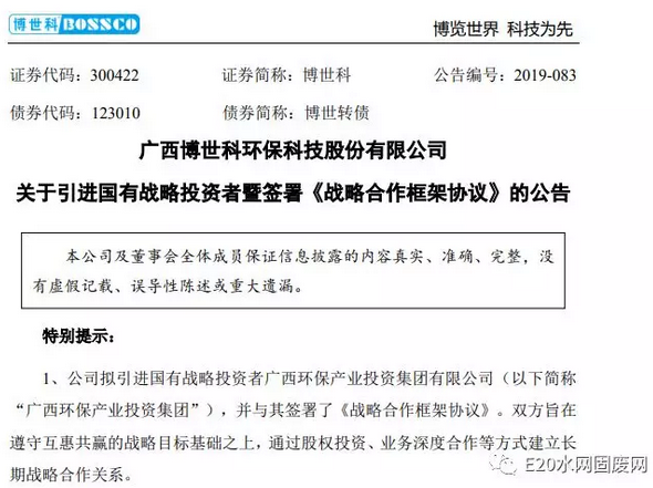 5月23日晚間,博世科公告,公司擬引進國有戰(zhàn)略投資者廣西環(huán)保產業(yè)投資集團有限公司,并與其簽署了《戰(zhàn)略合作框架協(xié)議》。雙方旨在遵守互惠共贏的戰(zhàn)略目標基礎之上,通過股權投資、業(yè)務深度合作等方式建立長期戰(zhàn)略合作關系。根據(jù)協(xié)議,廣西環(huán)保產業(yè)投資集團擬以股權方式對博世科進行長期戰(zhàn)略投資,具體投資金額、投資時間...