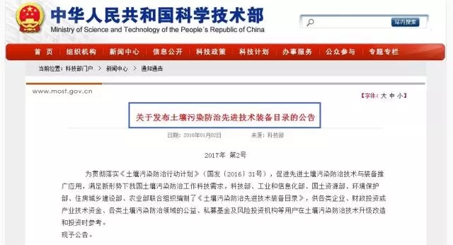 1月2日,科技部發(fā)布了土壤污染防治先進(jìn)技術(shù)裝備目錄的公告。由科技部、工業(yè)和信息化部、國土資源部、環(huán)境保護(hù)部、住房城鄉(xiāng)建設(shè)部、農(nóng)業(yè)部聯(lián)合組織編制的《土壤污染防治先進(jìn)技術(shù)裝備目錄》,旨在促進(jìn)先進(jìn)土壤污染防治技術(shù)與裝備推廣應(yīng)用,滿足新形勢下我國土壤污染防治工作科技需求。裝備目錄共有15種先進(jìn)技術(shù)裝備,包括...
