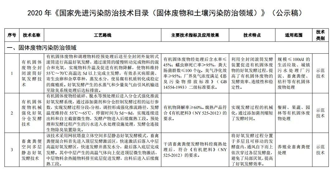 生態(tài)環(huán)境部:固廢領(lǐng)域2020年國家先進(jìn)污染防治技術(shù)目錄公示!