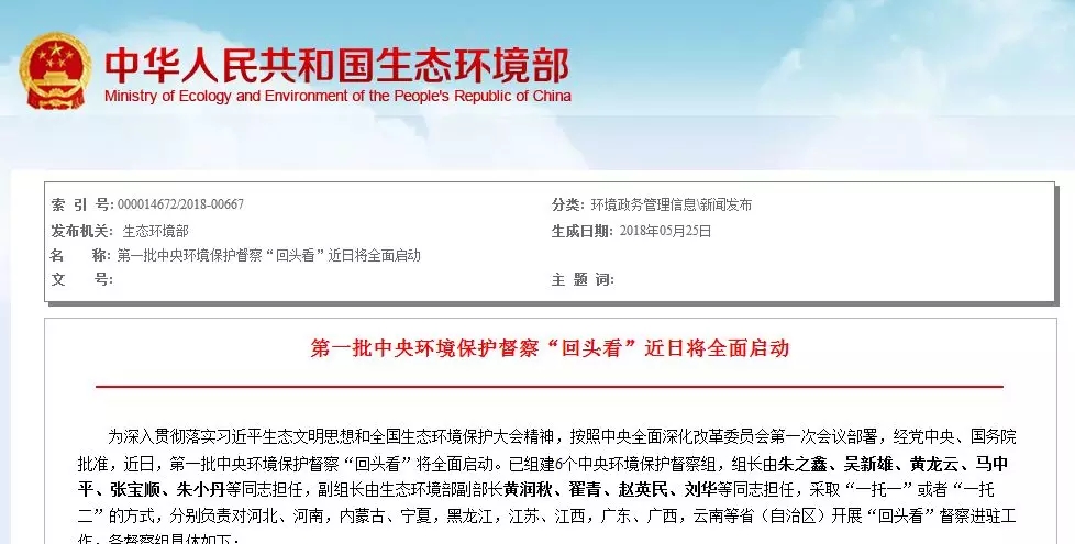 近日,第一批中央環(huán)境保護(hù)督察“回頭看”將全面啟動(dòng),對(duì)河北、河南,內(nèi)蒙古、寧夏,黑龍江,江蘇、江西,廣東、廣西,云南等?。ㄗ灾螀^(qū))開展“回頭看”督察進(jìn)駐工作,進(jìn)駐時(shí)間約為1個(gè)月。來源:生態(tài)環(huán)境部近日,第一批中央環(huán)境保護(hù)督察“回頭看”將全面啟動(dòng),對(duì)河北、河南,內(nèi)蒙古、寧夏,黑龍江,江蘇、江西,廣東、廣西...
