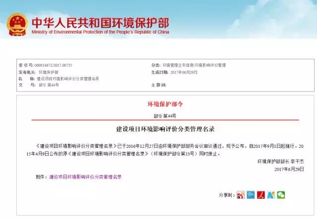 新版建設(shè)項目環(huán)評分類管理名錄今年9月1日起施行,50個大類精細劃分。附【2017版與2016版逐項對比】